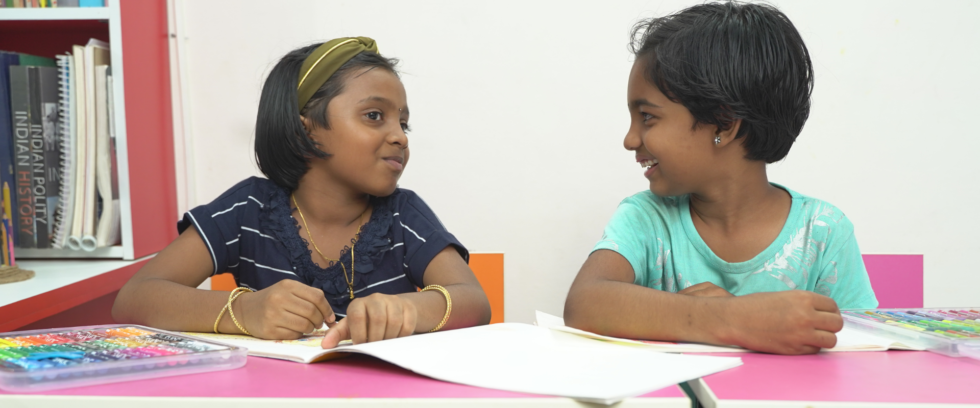 The course curriculum includes Drawing using shapes, numbers, dot paintings, animal and human drawings, Pattern paintings, and Resistance paintings. Children will learn to understand compositions, proportions, colour schemes and many fundamental aspects of creating simple artwork